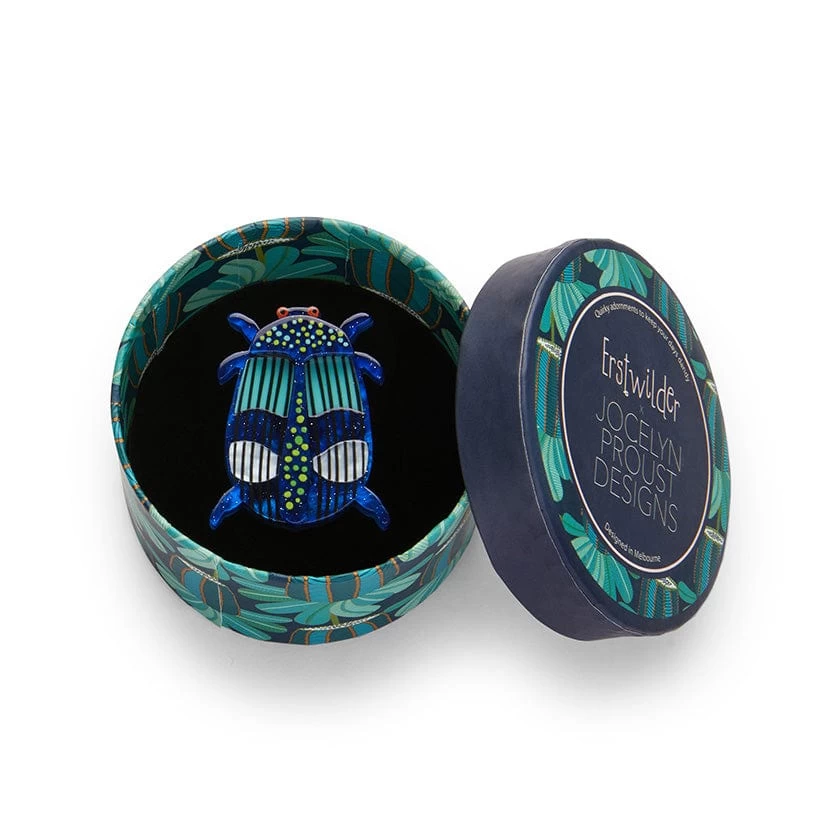 Hand-assembled from a selection of coloured textured resins and featuring a combination of printing, painting and highly detailed line work, this Beetle-inspired ring, available in Small, Medium and Large sizing, is part of the second Erstwilder x Jocelyn Proust collaboration. Those with a true love of insects will enojy pairing it with the Jewel Among Beetles ring with its matching brooch and hair clips too!