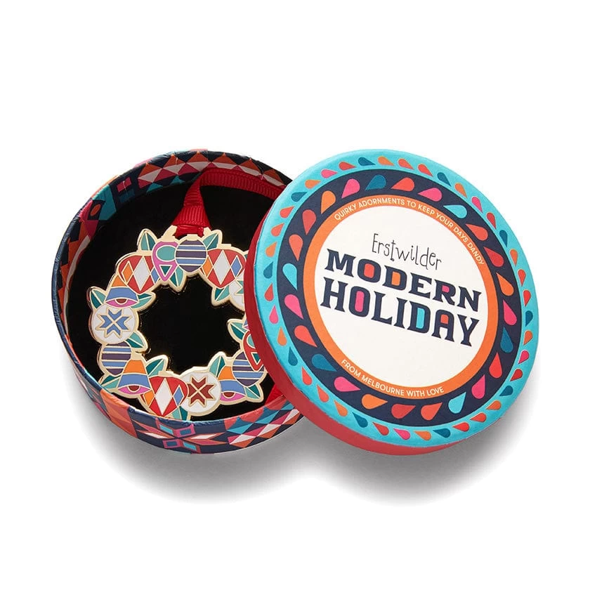 Adorn your tree with this quintessential symbol of Christmas. Limited to just 360 pieces of each design for worldwide release (including both Erstwilder stockists and Erstwilder.com), these large, colourful hard-enamel wreath ornaments make for exquisite decorations or the perfect gift for any devoted collector.