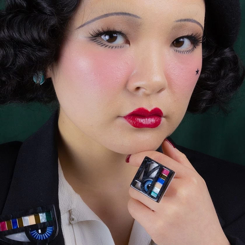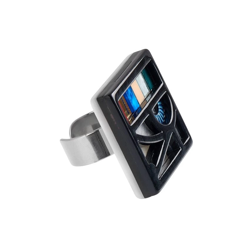 Promoting prosperity and protection from disease, this All-Seeing Eye of Horus ring is part of our Egyptian Revival collection. Inspired by all things Ancient Egypt, as filtered through the lens of Art Deco design, this radiant ring is brought to life with a stunning mixture of textured resins as well as a gorgeous gold mirror resin specifically chosen for this release. It can be worn together with the matching All-Seeing Eye of Horus brooch and enamel pin, or with any of the complimentary Queen of the Throne Isis designs.