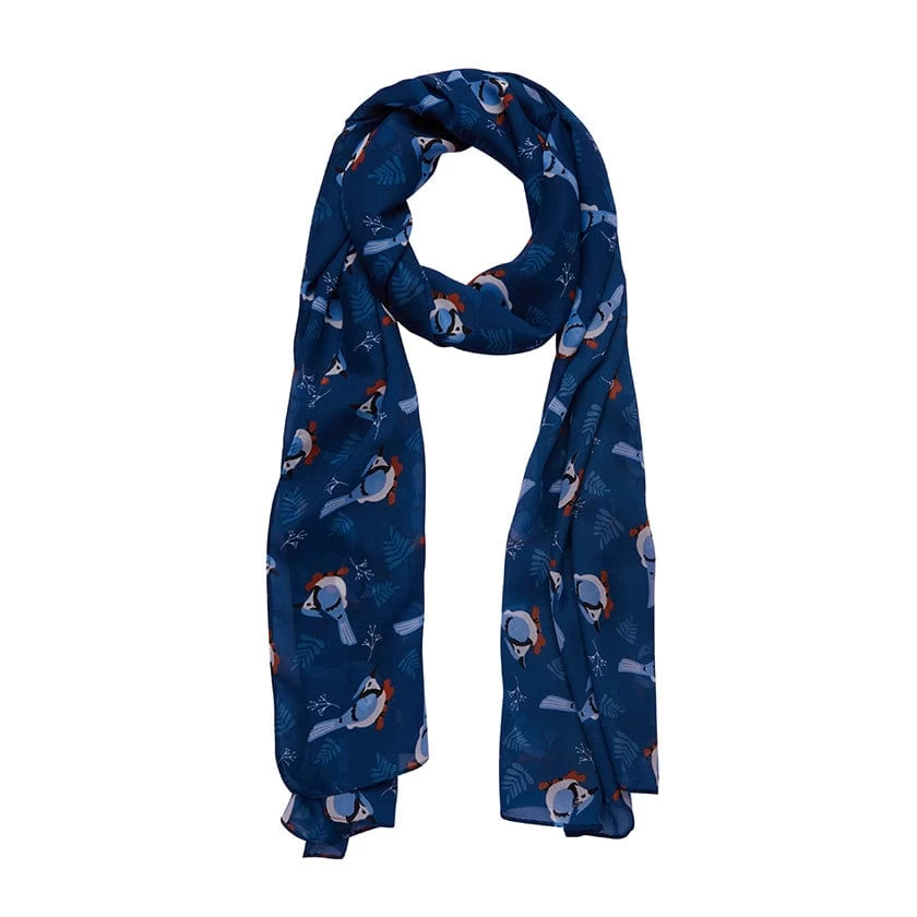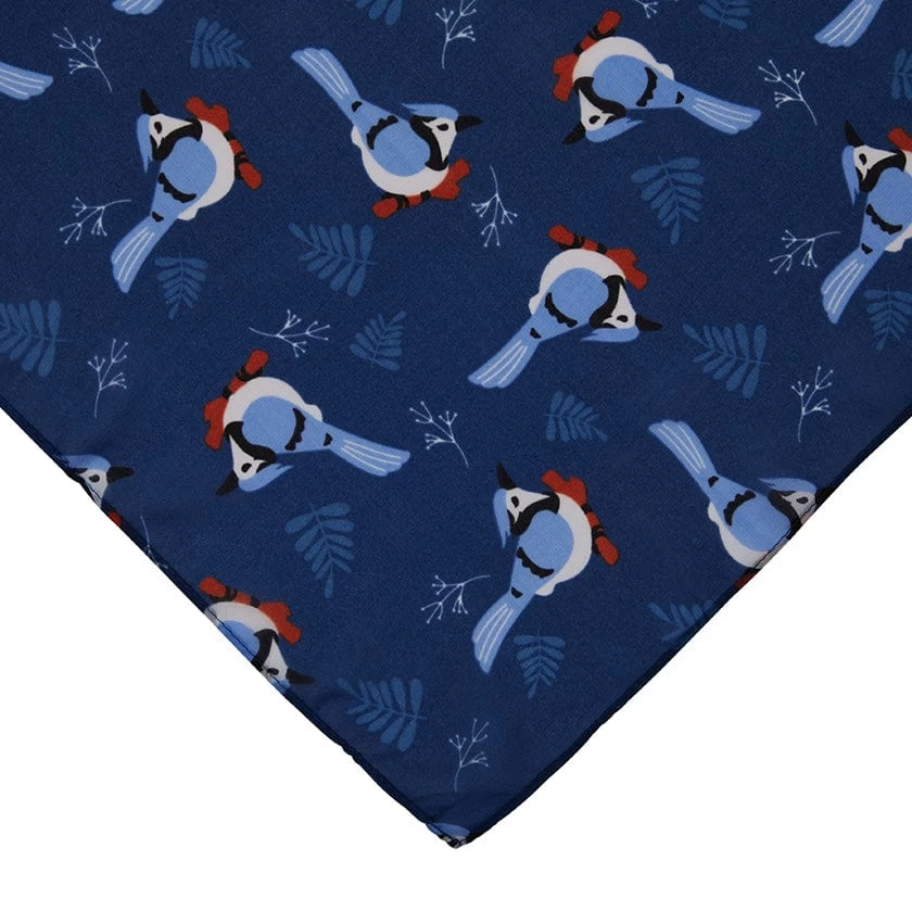 Feelin Blue? Well in this case it’s not so bad! This beautiful Blue Jay chiffon head scarf will make you feel like you’re flying high among the Blue Jays.