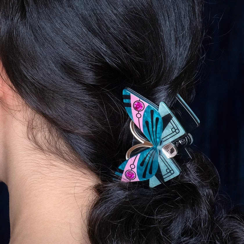 Welcome to the Deco jungle! Add a touch of glamour and elegance to any outfit with this limited-run Butterfly Sonata statement hair clip claw. Part of the Untamed Elegance collection, this design has been hand-assembled from textured resins with printed and painted detailing. It has also been embellished with a pair of stunning Czech glass stones for extra sparkle. Shop the matching brooch and necklace to complete the look, while stocks last.
