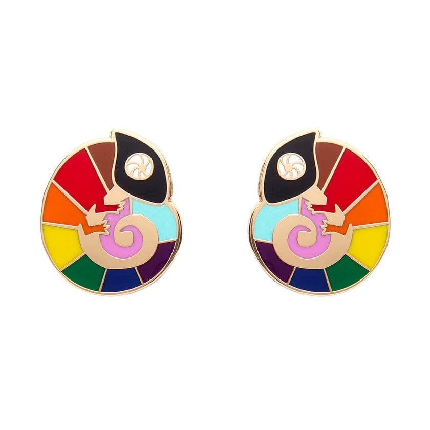 This chameleon says why blend in when you’re perfect just the way you are! Featuring colourful hard enamel with inspiration drawn from the progress pride flag and a gold finish, pop these colourful enamel earrings on your lovely lobes and show your support for the LGBTQIA+ community.