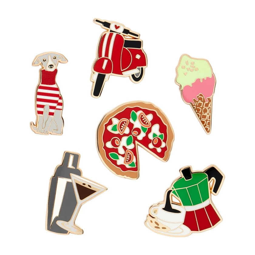 Celebrating the history, culture, fauna, and culinary delights of Italy, this gorgeous selection of enamel pins has been created as part of the Che Bello! (How Beautiful!) collection, saving you over 20% compared to when purchasing the pins individually.