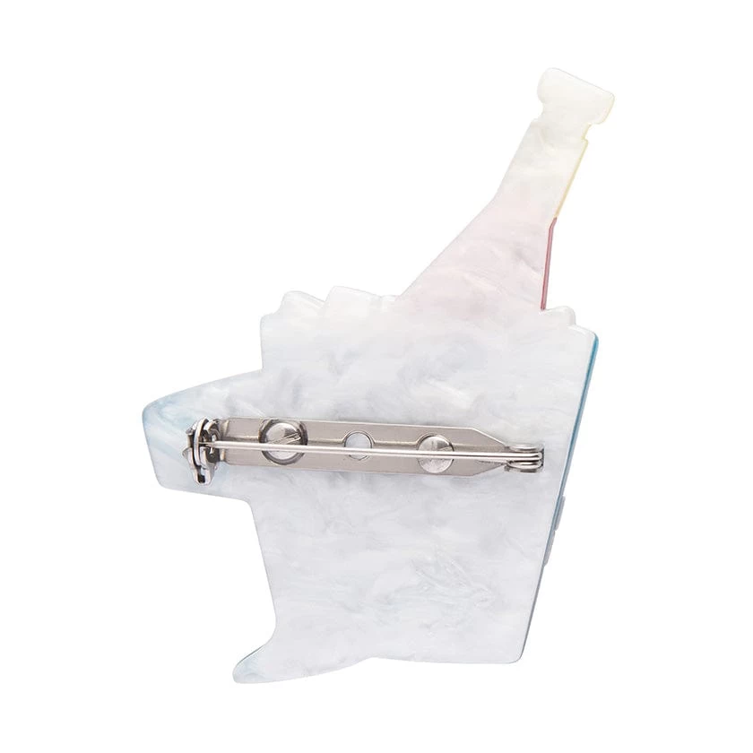 Whether or not you celebrate Christmas, everyone needs a little celebration every now and then. What better brooch design to do just that than this festive piece! Hand-assembled from a mix of colourful textured and glitter resins with inset pieces and painted detailing, this mid-century-styled bubbly brooch will have you in spirit of celebrating, well, whatever you please!