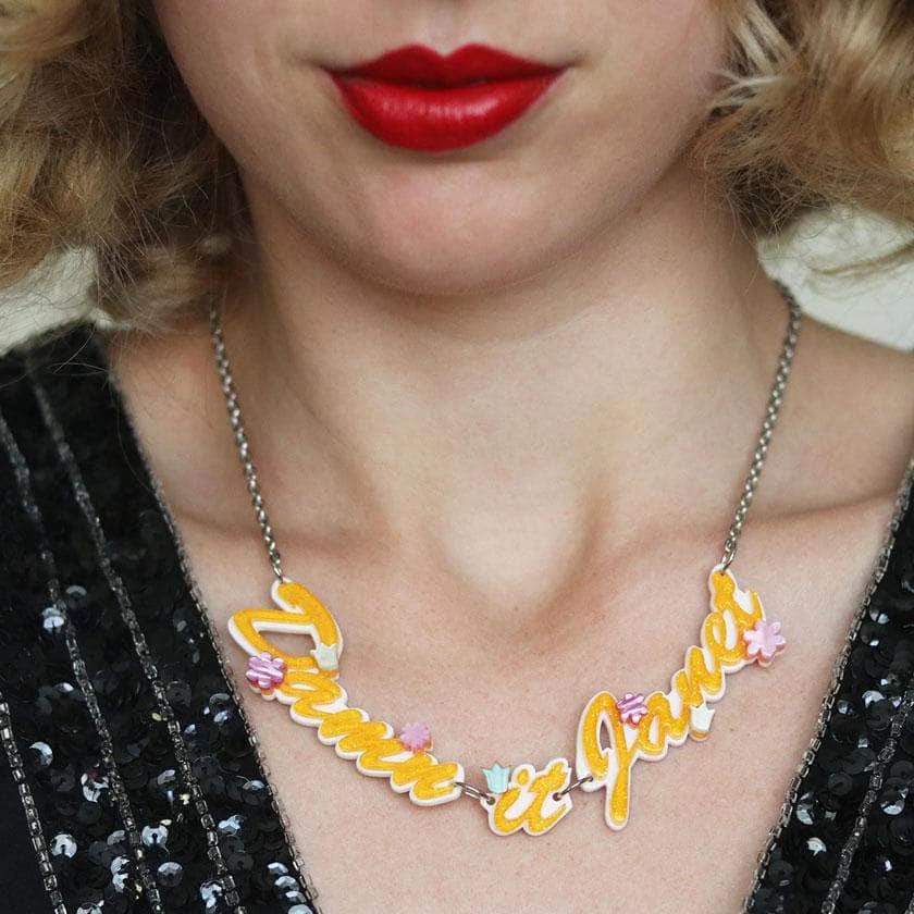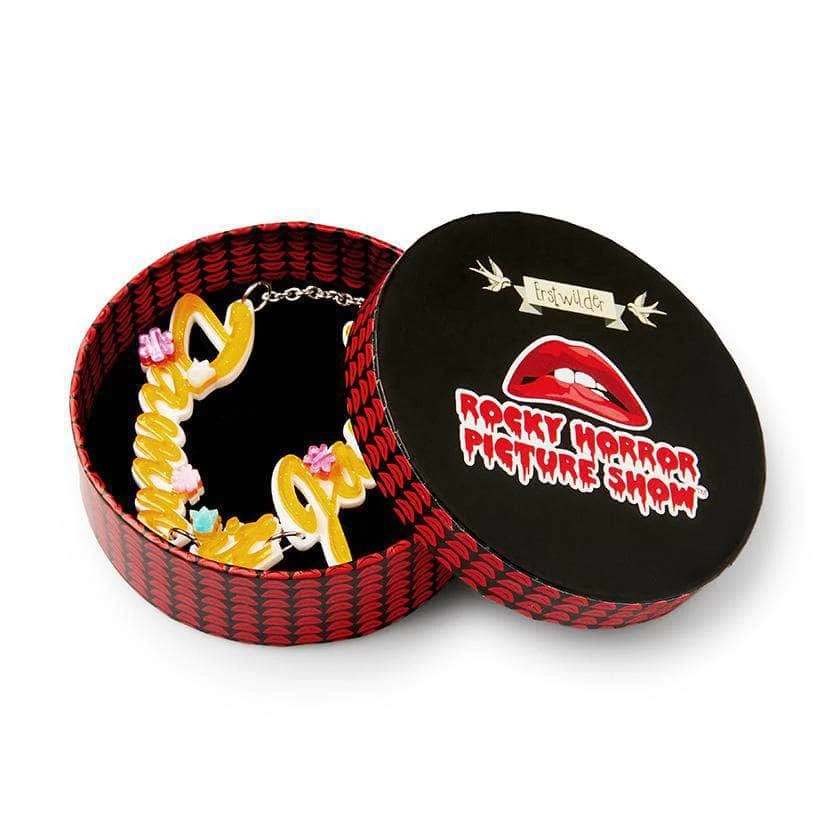 There’s three ways that love can grow. That’s good, bad, or with, Erstwilder’s new Dammit Janet necklace. Part of our homage to the cult classic Rocky Horror Picture Show, this piece has been hand-assembled from a combination of solid and textured resins and features hand-painted details. There’s a fire in our heart and you fan it