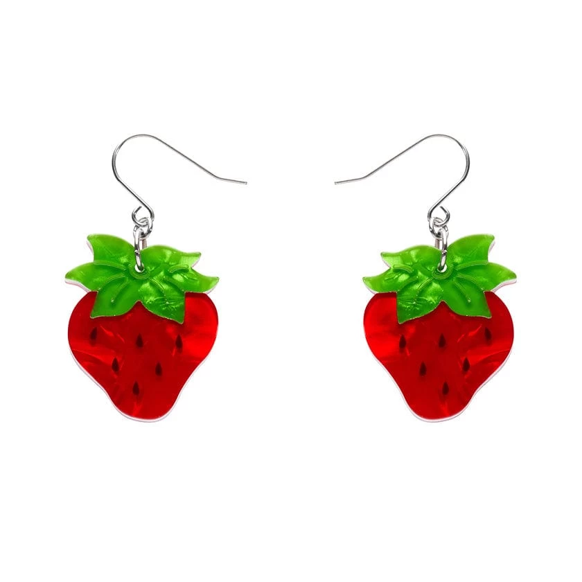 Sweeten up your earlobes with these Darling Strawberry drop earrings, part of our timeless, officially licensed Erstwilder x Strawberry Shortcake collection. Hand-crafted from colourful resins and featuring a combination of hand-painting and laser-etching, these berry nice accessories are available as drop earrings, stud earrings and hair clips.