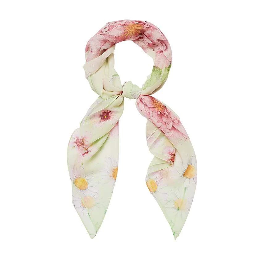 This lightweight head scarf, features a few of our recent A Floral Affair designs, Fortune Teller and Sweet Like Honey. Made from 100% Polyester, with a velvet chiffon feel, this isn’t your garden variety scarf.