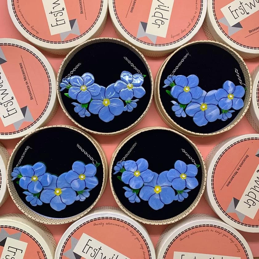 You’ll look adorable as a mouse’s ear in our gorgeous Forget Me Not necklace. Hand-assembled from marbled resin and featuring hand-finished details, there are over 75 varieties currently accepted by horticulturists the world over, we just hope they didn’t forget this one.