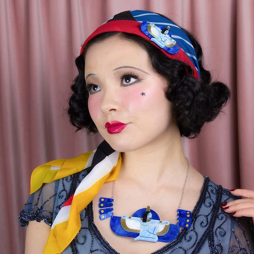 Make a feature of your fondness for this foreign land, with this Egypt Souvenir Square Scarf. Light weight, with a velvety soft feel, it can be worn on its own as an homage to this ancient and enduring civilisation, or with any of our Egyptian Revival accessories.