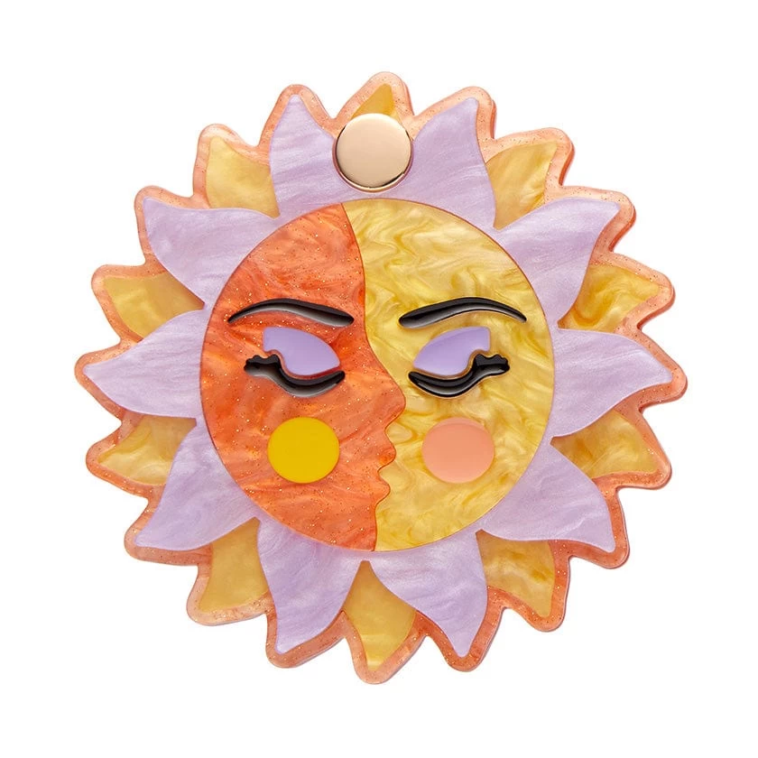 Fall in love with this radiating Eternal Sunshine mirror compact. Hand-assembled from a selection of stand-out resins and part of our Spellbound release, this sun mirror compact features a combination of hand-painted and laser-etched details making it a shining Halloween wardrobe supplement.