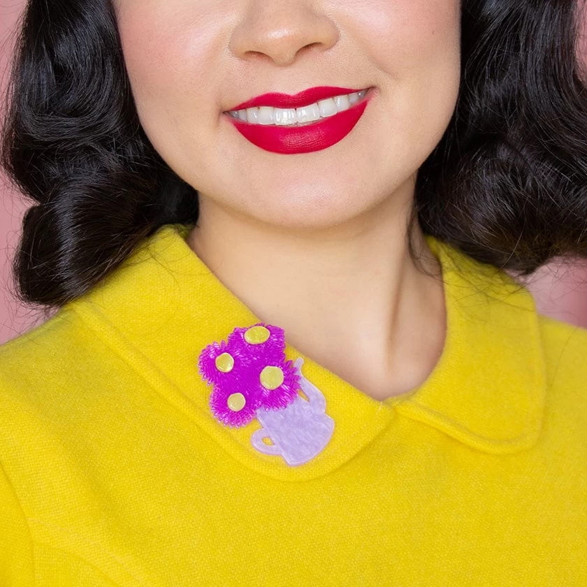 Celebrating A Year in Bloom, the captivating purple and yellow resins that bring this alluring aster brooch to life have been carefully hand-assembled and finished with laser-etched details. As the birth flower for the month of September, these star-like flowers begin to bloom in late Summer and early Autumn.