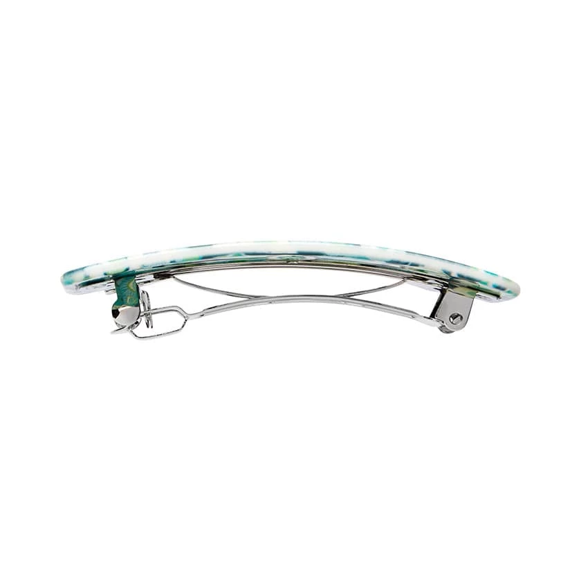 Add some colour to your ensemble with this Green Gum Blossom printed resin hair barrette. Striking the perfect balance between simplicity and complex design, a hallmark of Jocelyn’ Proust’s work, this lightweight accessory is perfect to compliment to your favourite outfit or to pair with your favourite resin brooches, earrings or necklaces.