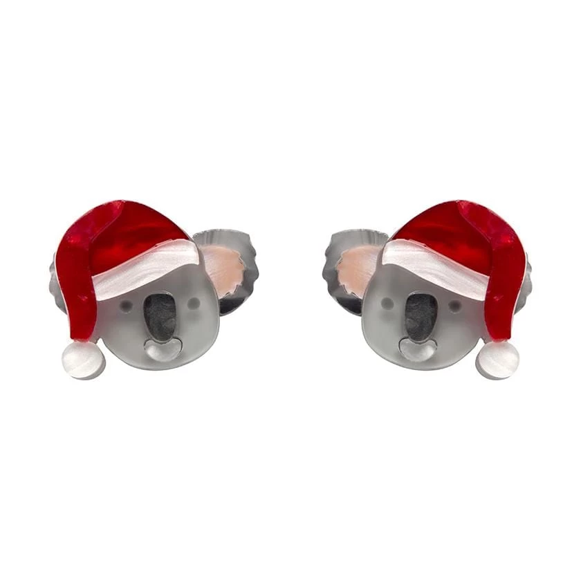 Decked out in an adorable Santa hat, these Christmas Koala stud earrings have been hand-assembled from textured resins, and feature hand-painted details.