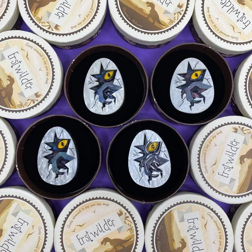The circle of Dinosaur life begins with an egg. Our ‘Life Finds a Way’ Brooch features a collection of mysterious resins nestled in a creamy textured egg, and hand-assemble details bring new life, to life! Be careful of this newborn, it might bite!
