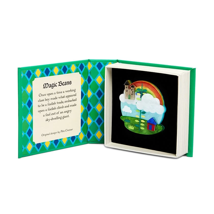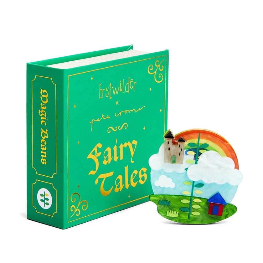 Journey up the beanstalk with this wearable art accessory! Part of our fairy tale collaboration with beloved Australian artist Pete Cromer, this Jack & the Beanstalk-inspired brooch has been lovingly hand-assembled and features laser etching as well as combination of hand-painted and printed detailing. Inspired by one of the world’s best-loved stories, this design might be a little triggering for giants…