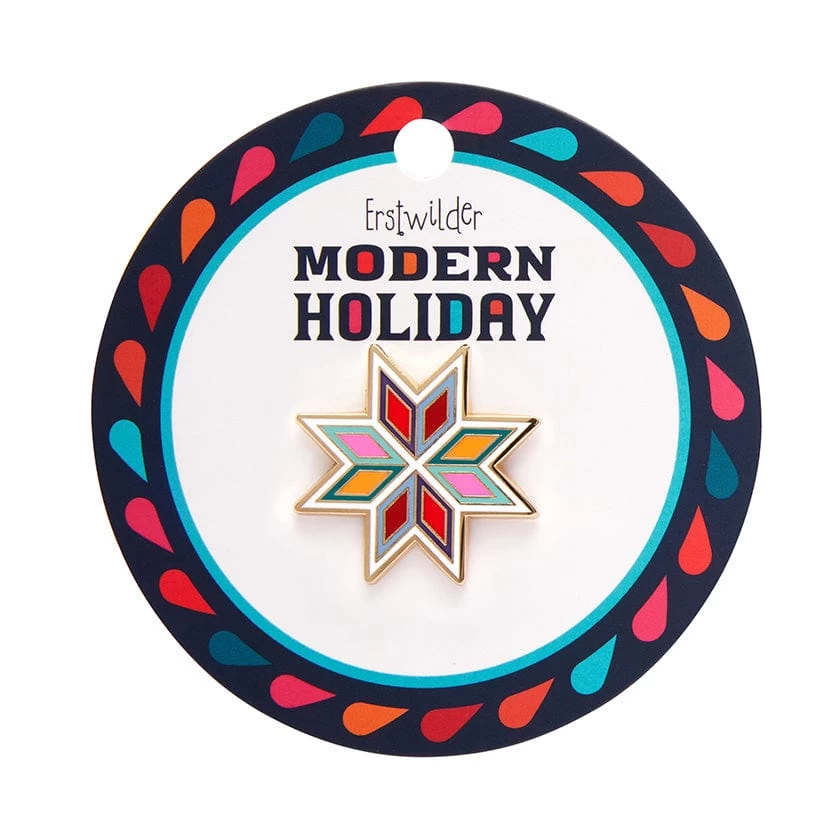 A major seasonal symbol with a mid-century design aesthetic. Pin on a little bit of festive spirit and take it with you wherever you may roam with this colourful, limited-run, hard enamel ‘Make My Wish Come True’ star pin.