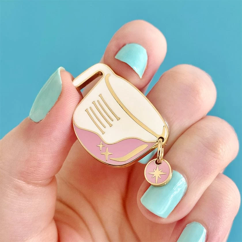 We can all but guarantee that if you love baking and cooking, you’ll have one of these in your kitchen cupboards! Inspired by a classic vintage measuring jug, you can now take your favourite cookware with you everywhere thanks to this gorgeous pink hard enamel pin.
