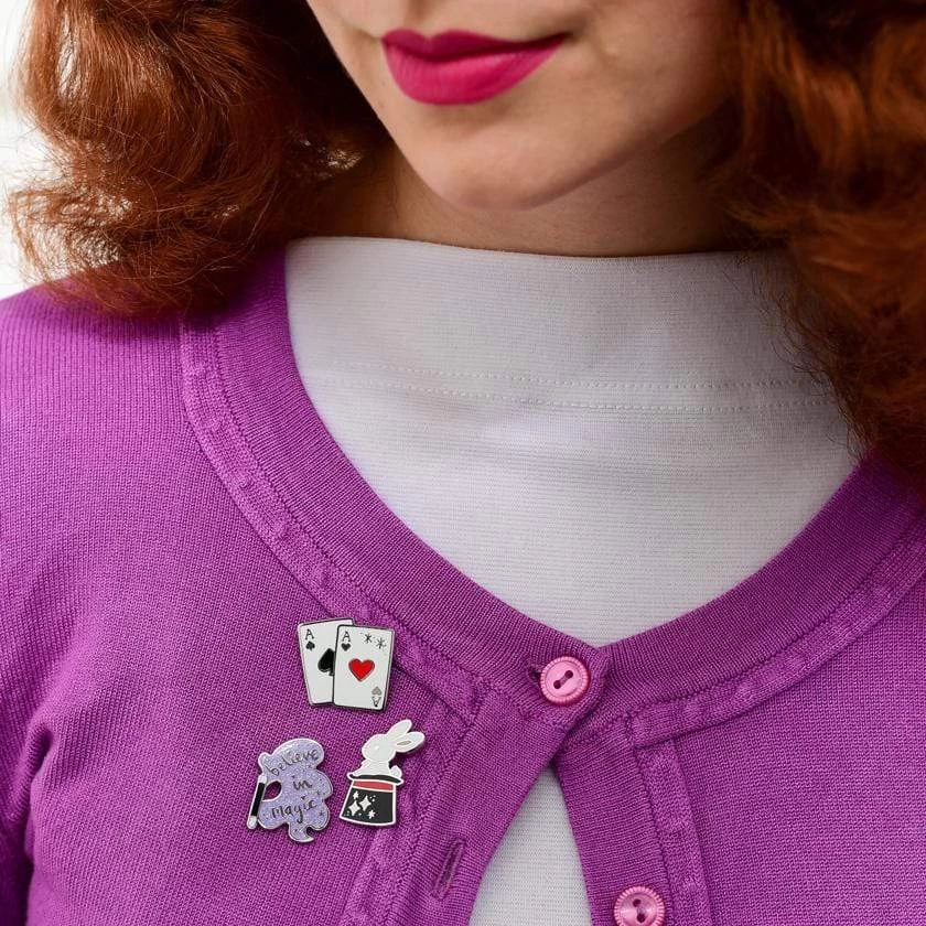 Don’t worry the hat’s a lot bigger on the inside! Our little Out of a Hat bunny pin is a magician in his own right! Buy by itself or in its Magic Kit set of three for extra razzle-dazzle.Â