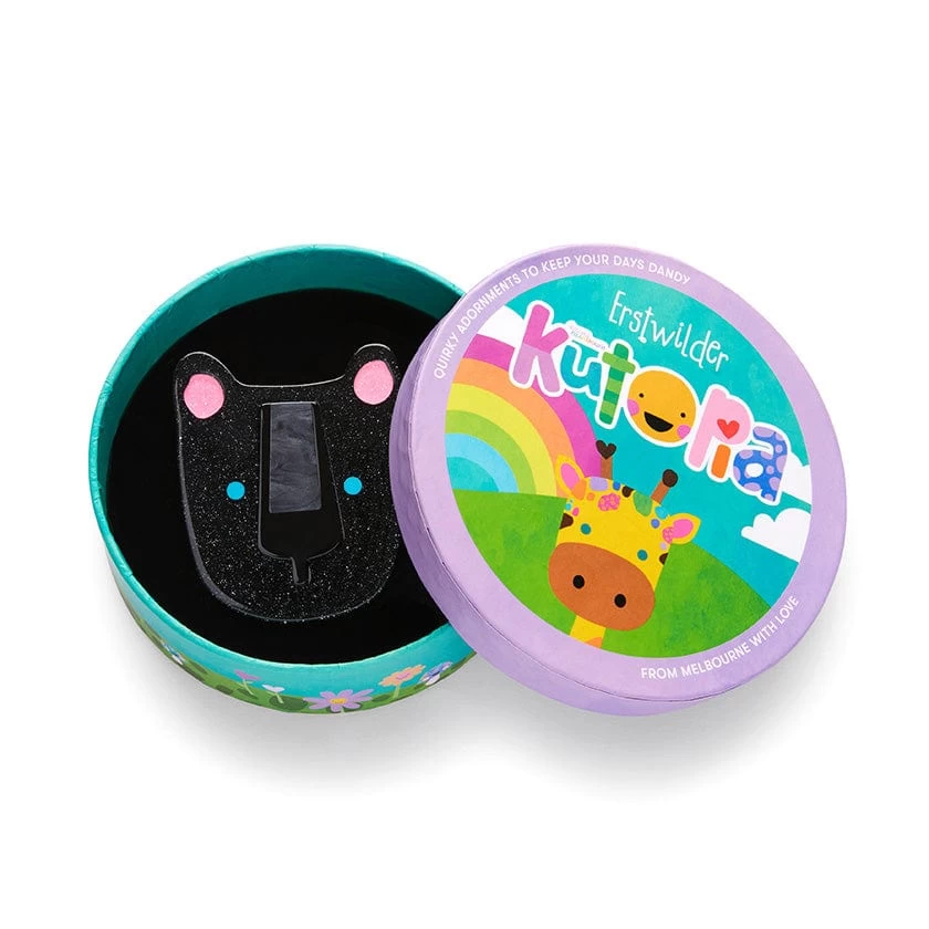 This Erstwilder x Kasey Rainbow Paddy the Panther brooch has been hand-assembled from a combination of colourful resins and finished with hand-painted details. A resident of the wonderful world of Kutopia, Paddy loves to be paraded around with pride. Wear them with any of their pals and they will be pleased as punch.