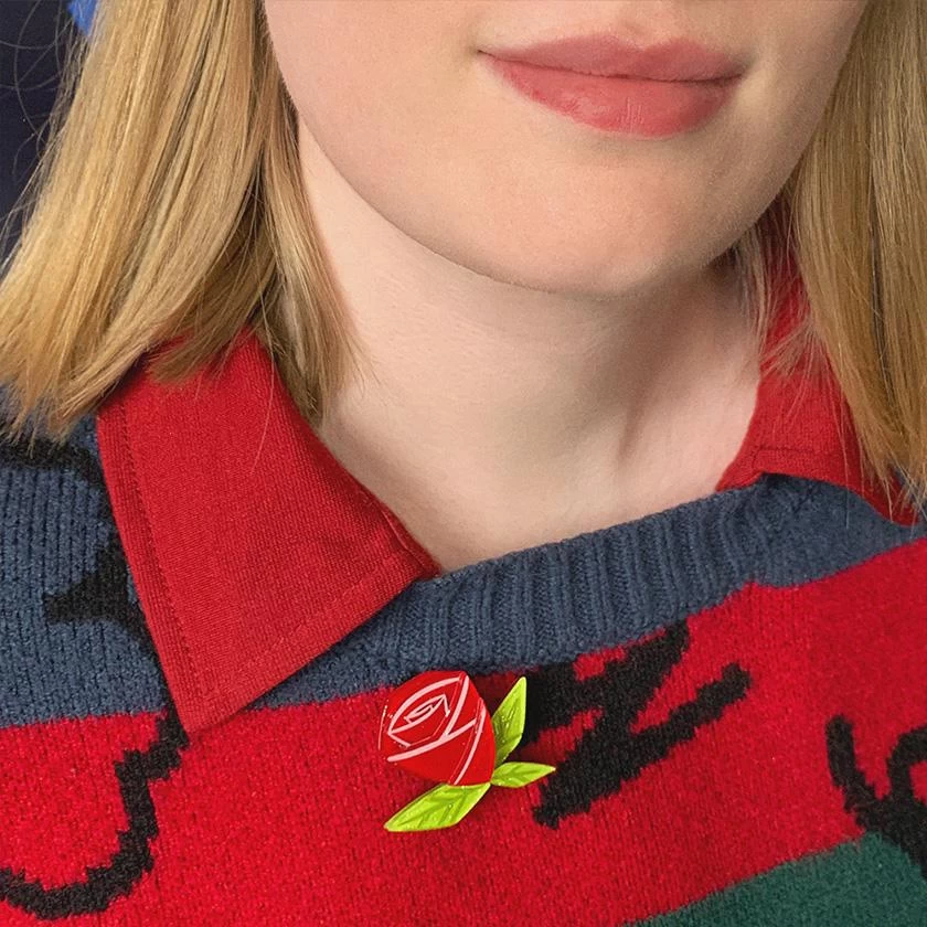 Part of our Alice’s Wonderland collaboration with Kitschy Witch, this hand-assembled red rose mini brooch uses a radiant combination of green and red resins and features hand-painted details. Pair it with the matching brooch, the stud earrings or any of the other wonderful pieces from the collection.