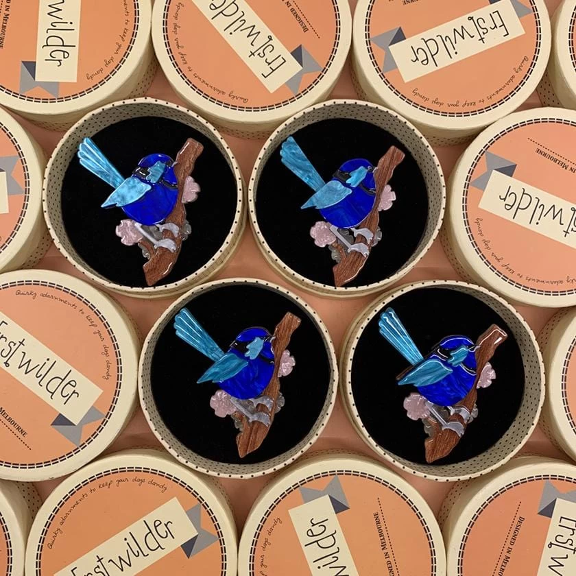 Please note each piece may differ from one to another, and to the ‘Phoebe the Fairy Wren’ brooch pictured. The design features a bevy of beautiful textured resins which can differ from piece to piece. As with real feathery friends themselves, each brooch is wonderfully unique and full of its own character.Â