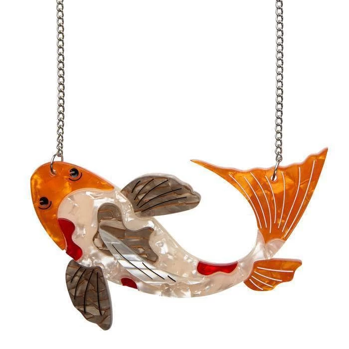 Symbolising strength, courage, bravery and a willingness to battle the odds, this graceful Koi fish necklace has been created from a combination of patterned and textured resins and features hand-painted details.