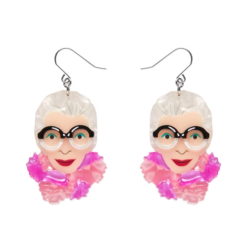 These official Erstwilder x Iris Apfel drop earrings showcase Iris’ iconic portrait, whilst wearing a bold and colourful pink pom-poms! Hand-assembled from a mix of gorgeous resins, with laser-etched detailing, this charming design captures her likeness and speaks to the importance of owning your style.