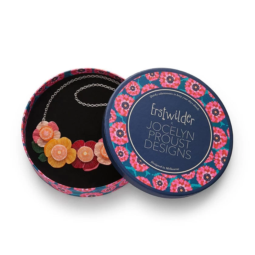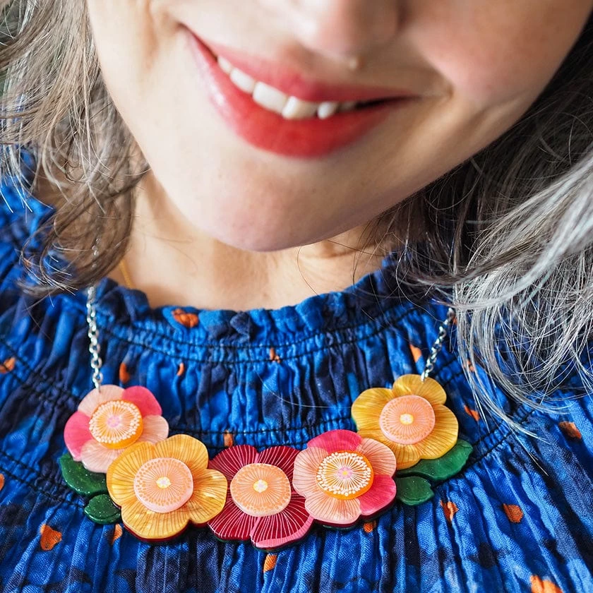 Carry a symbol of remembrance and heartfelt admiration with this beautifully crafted Poppies necklace, created as part of our fourth collaboration and 2025 collection with Jocelyn Proust. Hand-assembled from vibrant resins and detailed with a combination of printed and painted elements, this design honours the beauty of nature and the deep emotions these blooms evoke. Love this limited-run design? You’ll also find it available as a brooch, hair clips and an enamel pin, while stocks last.