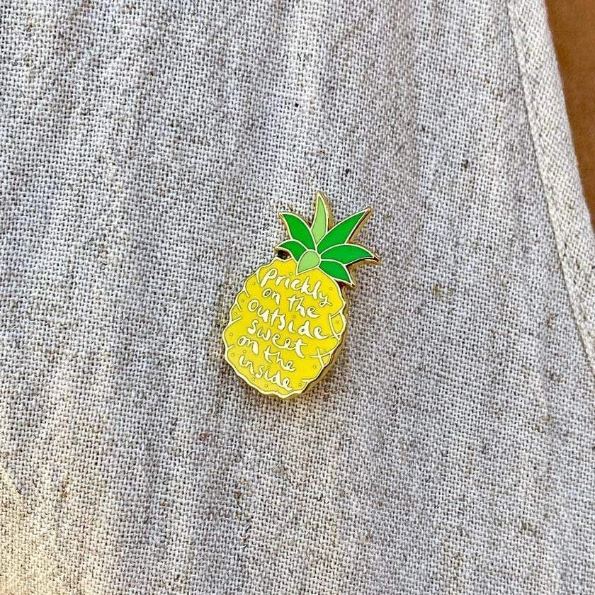 Prickly on the outside, sweet on the inside. Pop our Prickly Pineapple Enamel Pin onto your cool black jacket and speed away on your motorcycle, that you’re riding to raise money for charity.