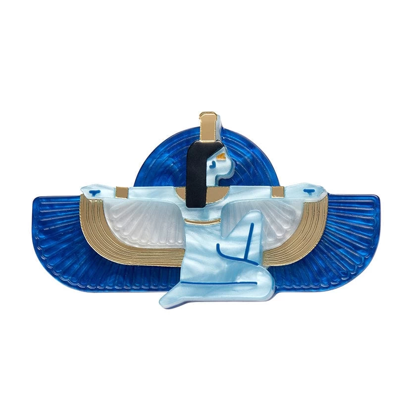 Goddess of fertility, daughter of the earth and the sky, this Queen of the Throne Isis brooch is part of our Egyptian Revival collection. Inspired by all things Ancient Egypt, as filtered through the lens of Art Deco design, this glorious brooch has been hand-assembled from a selection of textured resins and features gorgeous gold mirror resin specifically chosen for this release. It can be worn together with its matching necklace or alongside any of the complimentary All Seeing Eye of Horus designs.