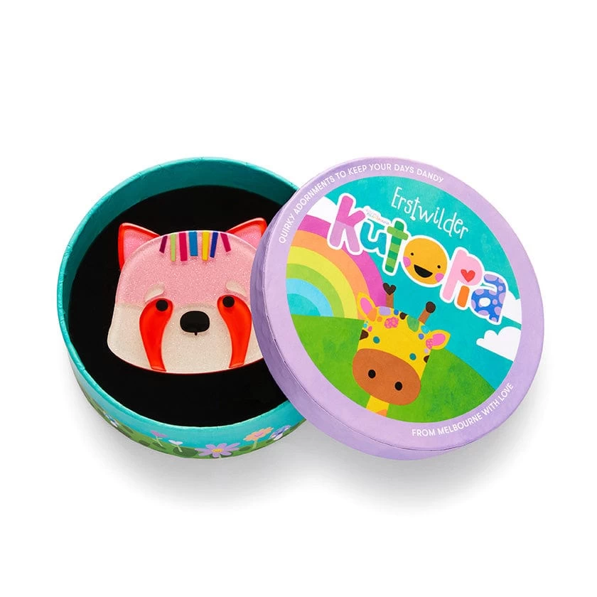This Erstwilder x Kasey Rainbow Rhonda the Red Panda brooch has been hand-assembled from a combination of colourful resins and finished with hand-painted details. A resident of the wonderful world of Kutopia, Rhonda will help you radiate warmth. Pin her on and put a smile on the face of everyone you pass.
