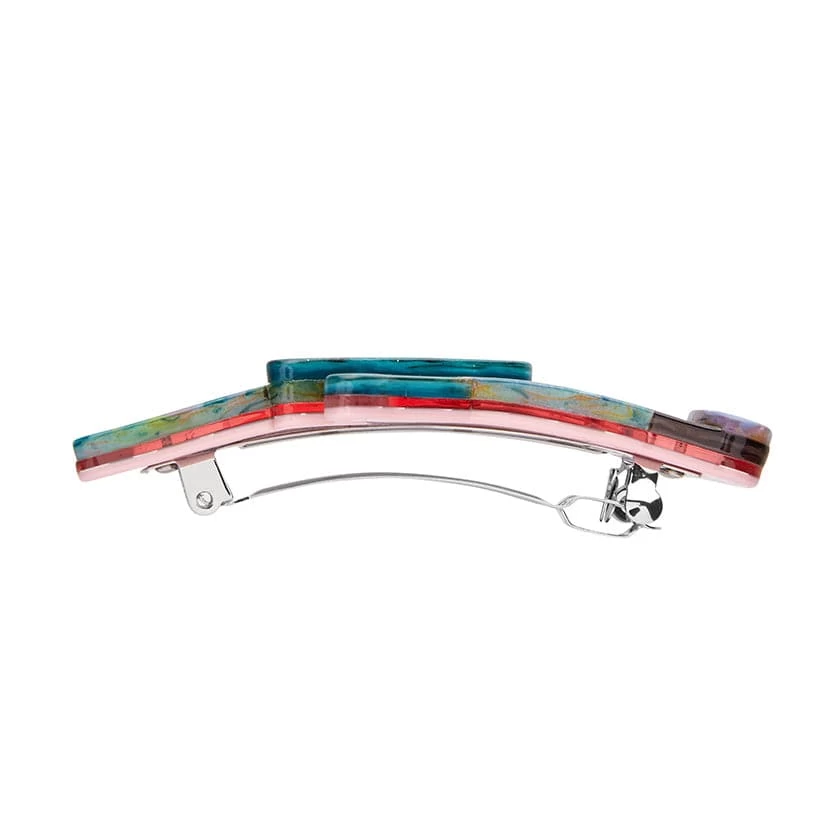 Introduce a vibrant touch of nature to your wardrobe with this Art Nouveau grasshopper hair barrette. Hand-crafted from beautiful textured resins with meticulous attention to detail, this piece reflects the delicate charm of the insect world. Wear it as a statement piece or pair it with the matching brooch for a complete look.