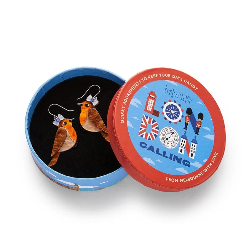 Let Rosie the Robin brighten your day with her vibrant marbled orange and brown resins. Created for the ‘London Calling’ collection, these limited-run earrings have been hand-assembled, complete with printed detailing and topped with a delicate bow, making them a cheerful emblem of British wildlife. Find this design available as a brooch too, while stocks last.