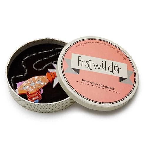 Please be aware that resin is akin to ceramic and glass and therefore may be damaged if dropped or knocked. Keep your Erstwilder companion neatly tucked away in this box when not being worn, avoid contact with perfumes, lotions, water and excessive sunlight and you?ll have a trusted friend for years to come.