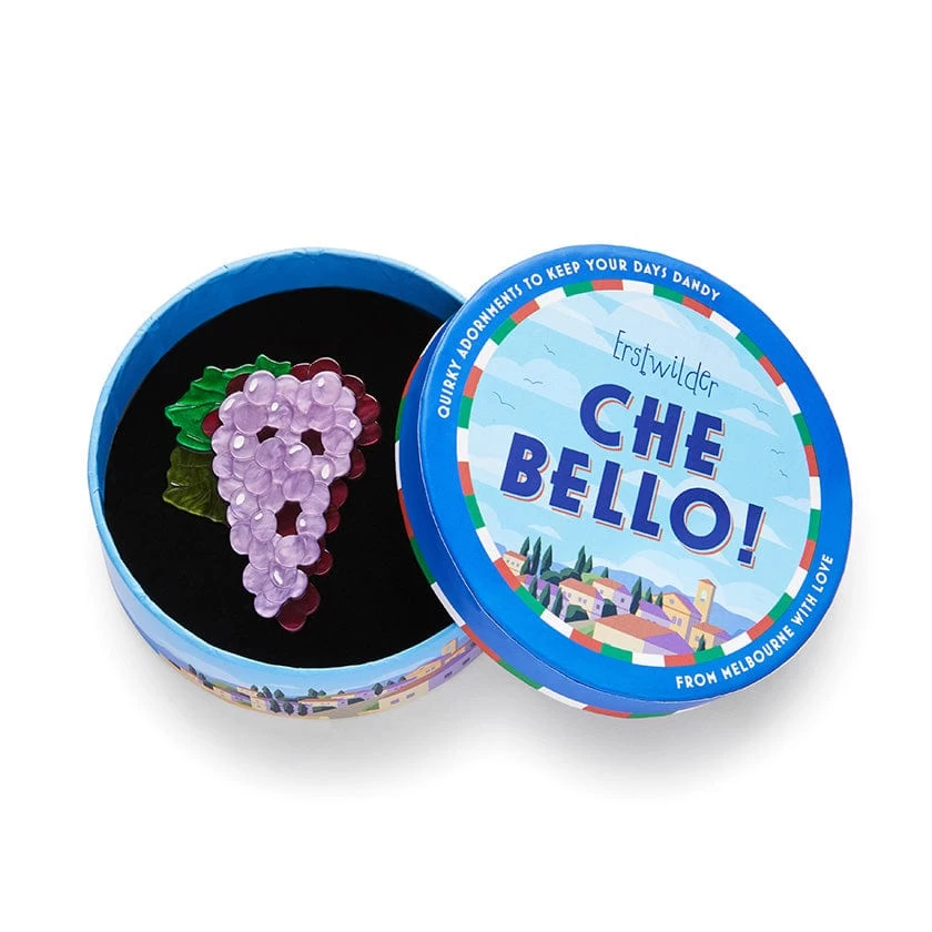 Celebrating the history, culture, fauna, and culinary delights of Italy, the Sangiovese Sun brooch has been created as part of the Che Bello! (How Beautiful!) collection. Hand-assembled from gorgeous purple and green textures resins and complete with etched and hand-painted detailing, this brooch will have you saying ‘what a beautiful bunch!’.