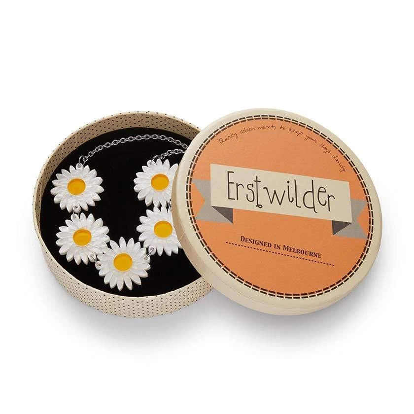 Please don’t try to pick the petals from our Bellis Perennis brooch. Hand-assembled from a combination of striking solid and subtle textured resins, our version of the common daisy will provide everlasting beauty in a way that the real thing can’t compete.