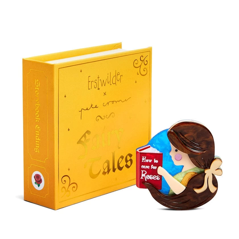 Adventure in the great wide somewhere with this wearable art accessory. Part of our fairy tale collaboration with beloved Australian artist Pete Cromer, this Beauty and the Beast-inspired design has been lovingly hand-assembled and features laser etching as well as combination of hand-painted and printed detailing. Inspired by one of the world’s best-loved stories, this design is also available as a hard enamel pin. You might be interested in the companion rose and beast earrings too!