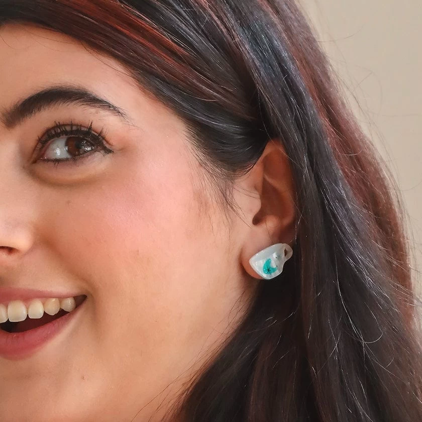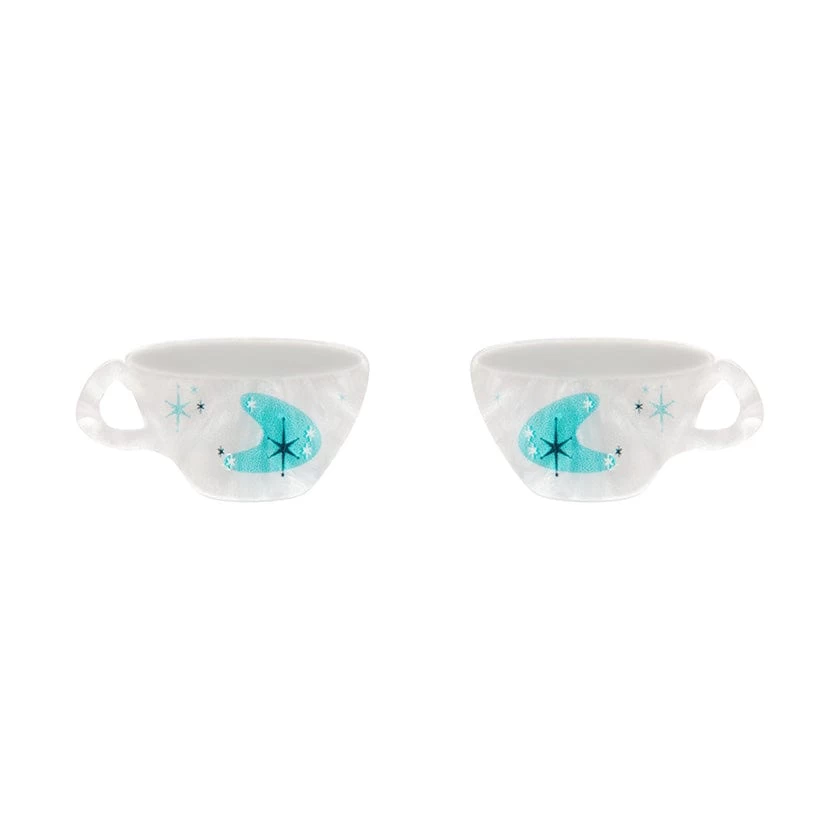 Step back into the heart of the home with this nostalgia-inducing atomic tea cup stud earrings, part of the second Vintage Kitchen release. Hand-assembled from resin and finished with printing, a similar version of this retro-future Tea and Sympathy design is also available as a hard enamel pin.