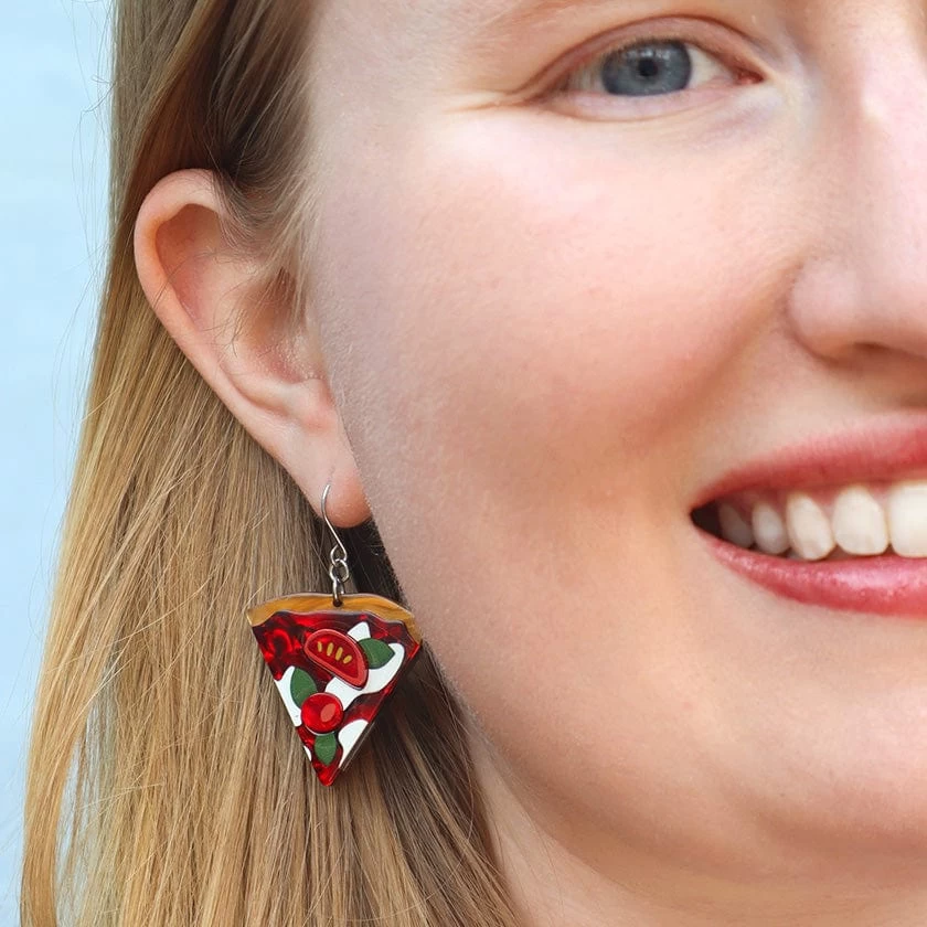 Celebrating the history, culture, fauna, and culinary delights of Italy, the That’s Amore earrings have been created as part of the Che Bello! (How Beautiful!) collection. Hand-assembled from mouth-watering textured resins and complete with printed detailing, this Pizza slice design looks just about good enough to eat! Pair it with the the matching pizza brooch to complete the look.