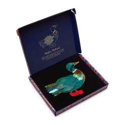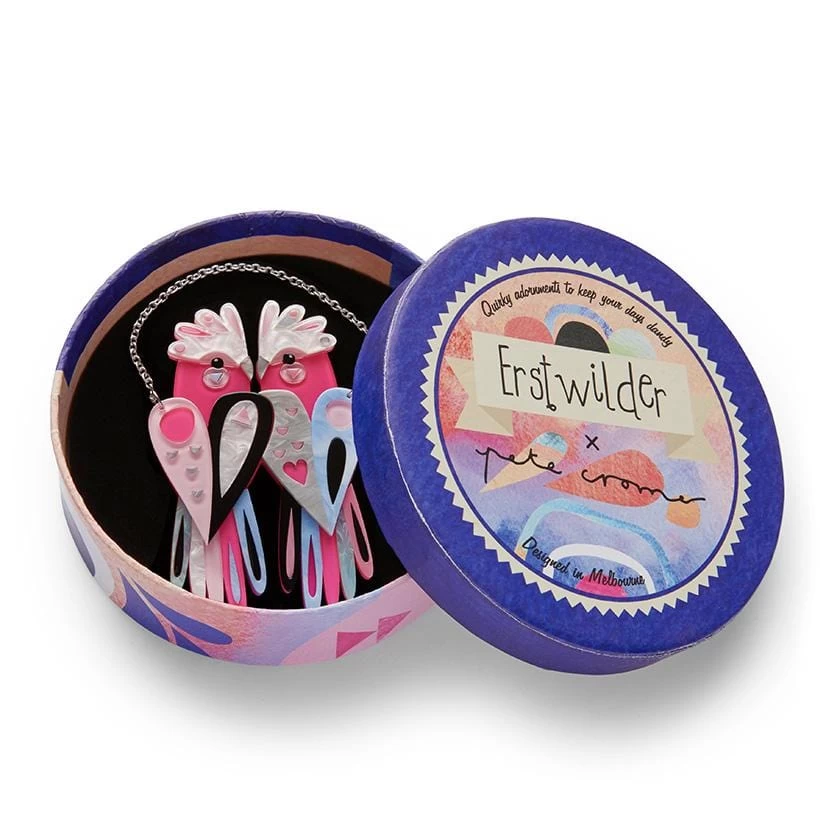 Please be aware that resin is akin to ceramic and glass and therefore may be damaged if dropped or knocked. Due to the use of high-quality silver-plating in our brooch clasps, tarnishing and oxidisation can occur, producing a black and gold discolouration. As with all silver products, you can simply restore it using a silver cloth. Keep your Erstwilder companion neatly tucked away in this box when not being worn, avoid contact with perfumes, lotions, water, and excessive sunlight and you’ll have a trusted friend for years to come.