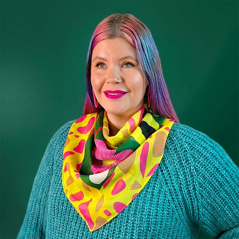Transport your wardrobe into the wild, with this Erstwilder X Pete Cromer Genteel Giraffe Square Scarf. Light weight, with a velvety soft feel, wear with the other Genteel Giraffe designs within the range or by itself for a look that screams wild at heart.