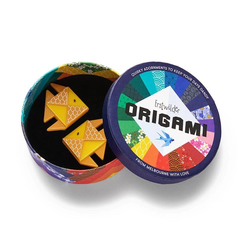 Hand-assembled from a combination of printed and solid resins, these limited-run The Memorable Goldfish hair clips are accessories not so easily forgotten. With the expertly-layered resin perfectly emulating the folds of origami paper, you can put memory-related myths to bed by pairing these hair clips with the Forget-Me-Not elephant brooch, or their matching brooch and earrings.