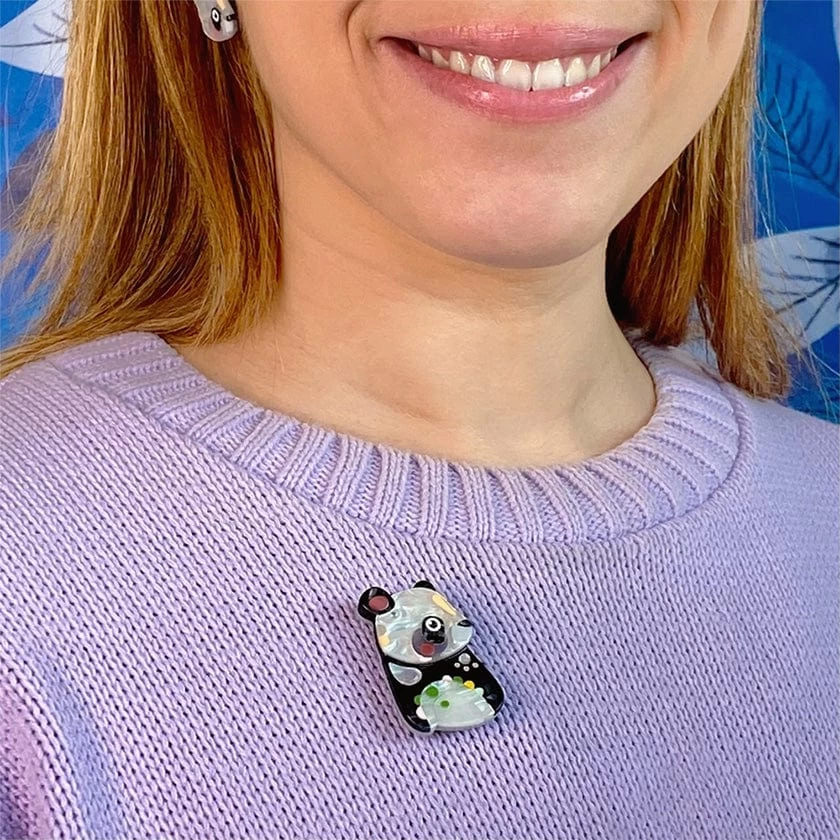 A very wild collaboration with beloved Australian artist Pete Cromer, this pint-sized Panda brooch has been brought to life from a combination of marbled and textured resins. Lovingly designed, hand-assembled and hand-painted, this little fellow proves that good things do come in small packages.