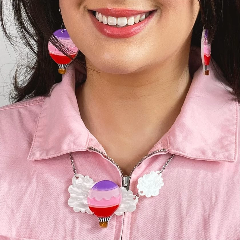 In a big colourful balloon, you get to see the world from a different perspective. With a collection of pink and purple bubble resins, and hand-assembled details, you’ll feel lighter than air with this beautiful balloon in the clouds necklace. Don’t float away with the breeze, or do, you might find an adventure on the horizon.
